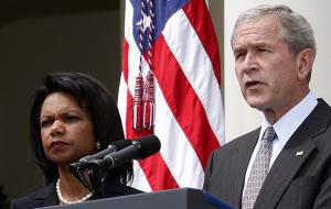 Он также направил государственного секретаря Кондолизу Райс в Париж для переговоров с миротворцами от ЕС, а затем в Грузию, чтобы выразить солидарность с демократически избранным правительством этой страны.